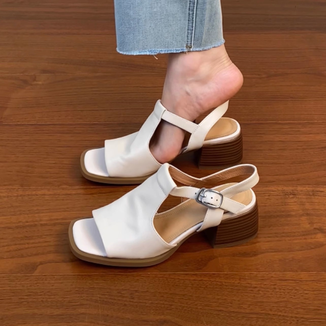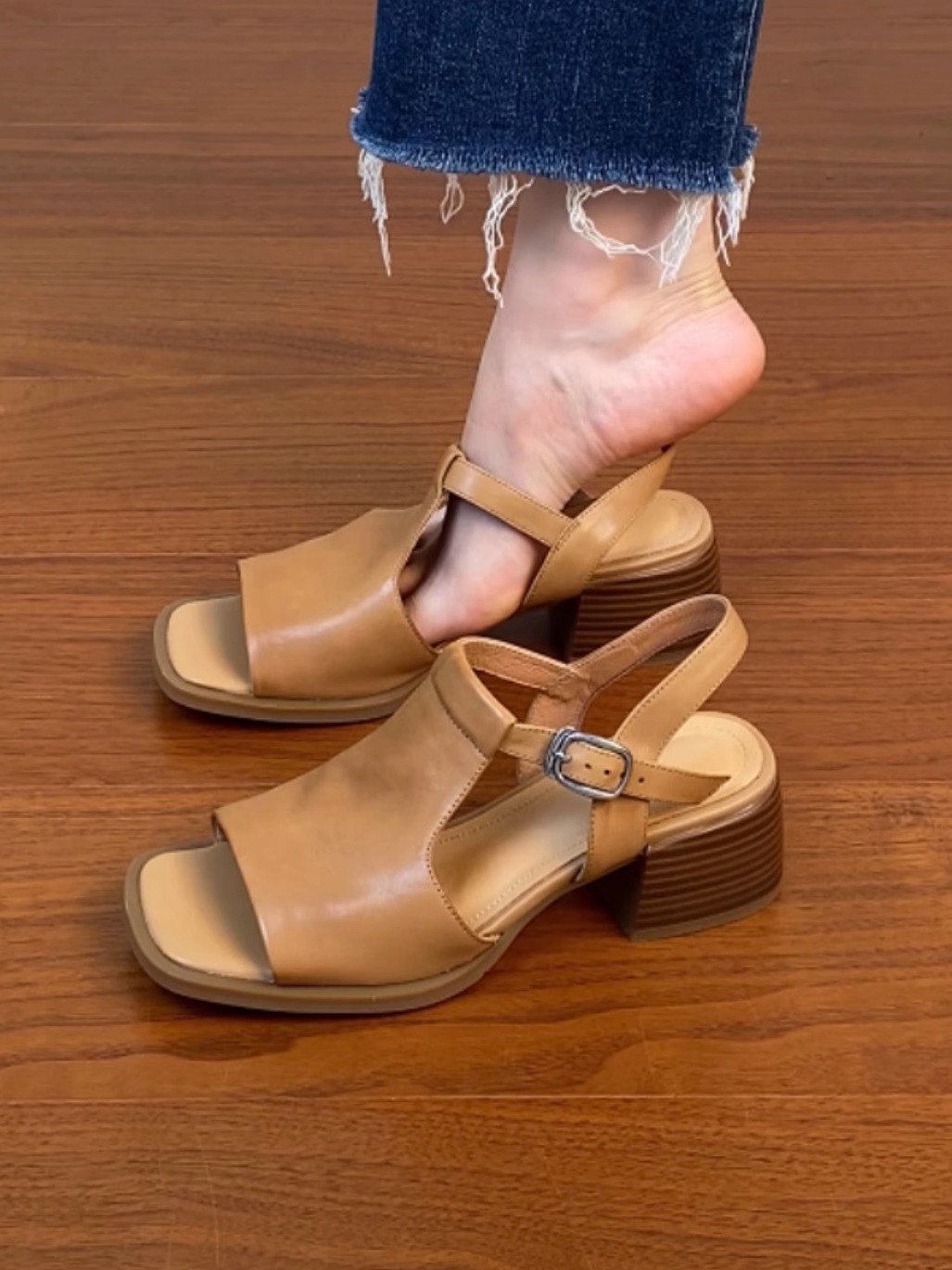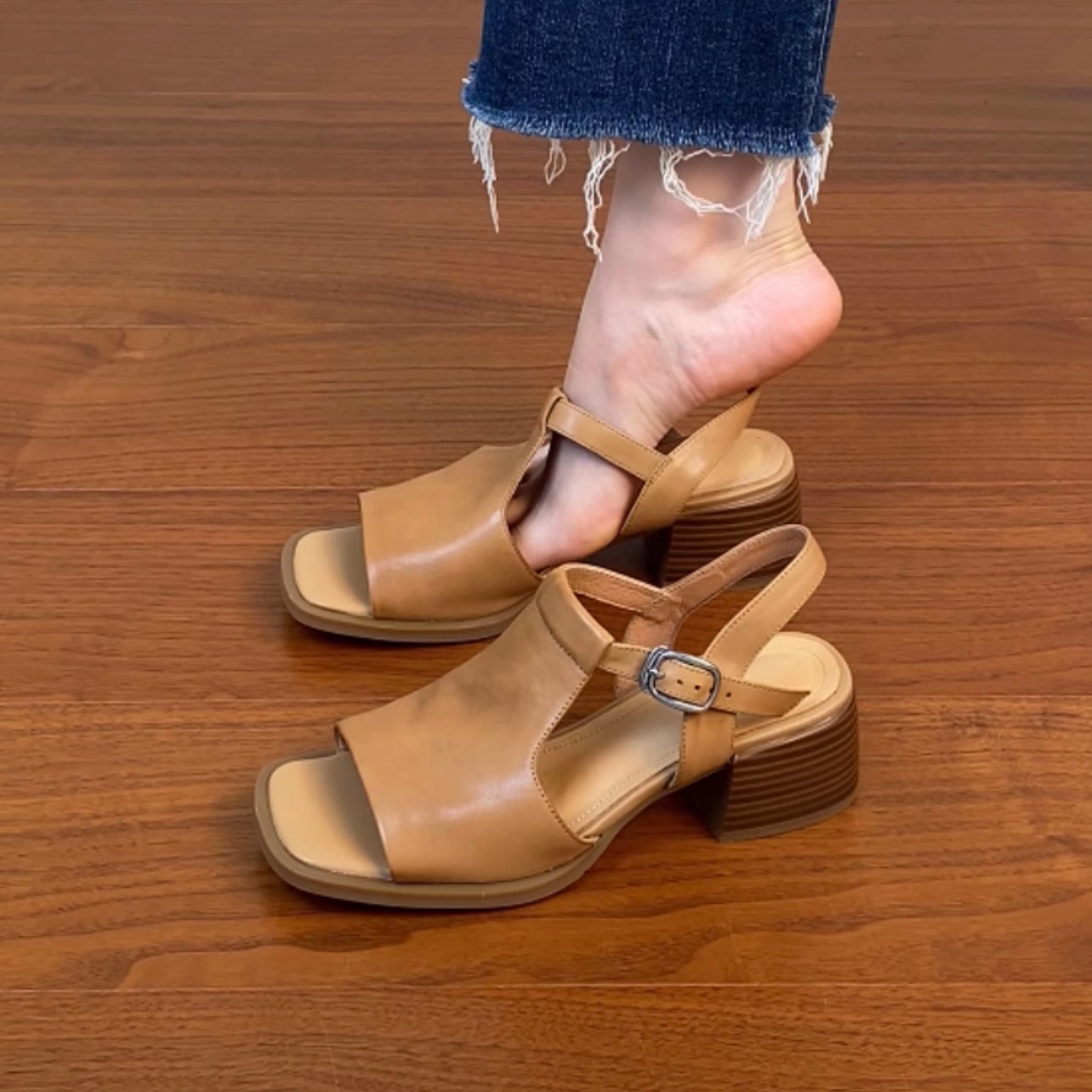 Chunky Heel Open Toe Sals Women Black Square Toe Cowhide Summer High Heels High-quality product featuring prom dresses, spring outfits, business casual outfits and more. Modern design that fits the latest trends. Premium materials ensure durability and comfort. Order now for special offers! Product designed with attention to every detail. Suitable for all occasions and personal styles.