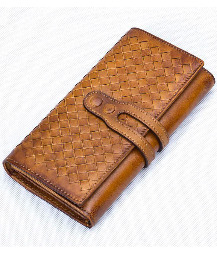 Classic Coffee Diamond lattice Genuine Calf Leather Wallet Purse
