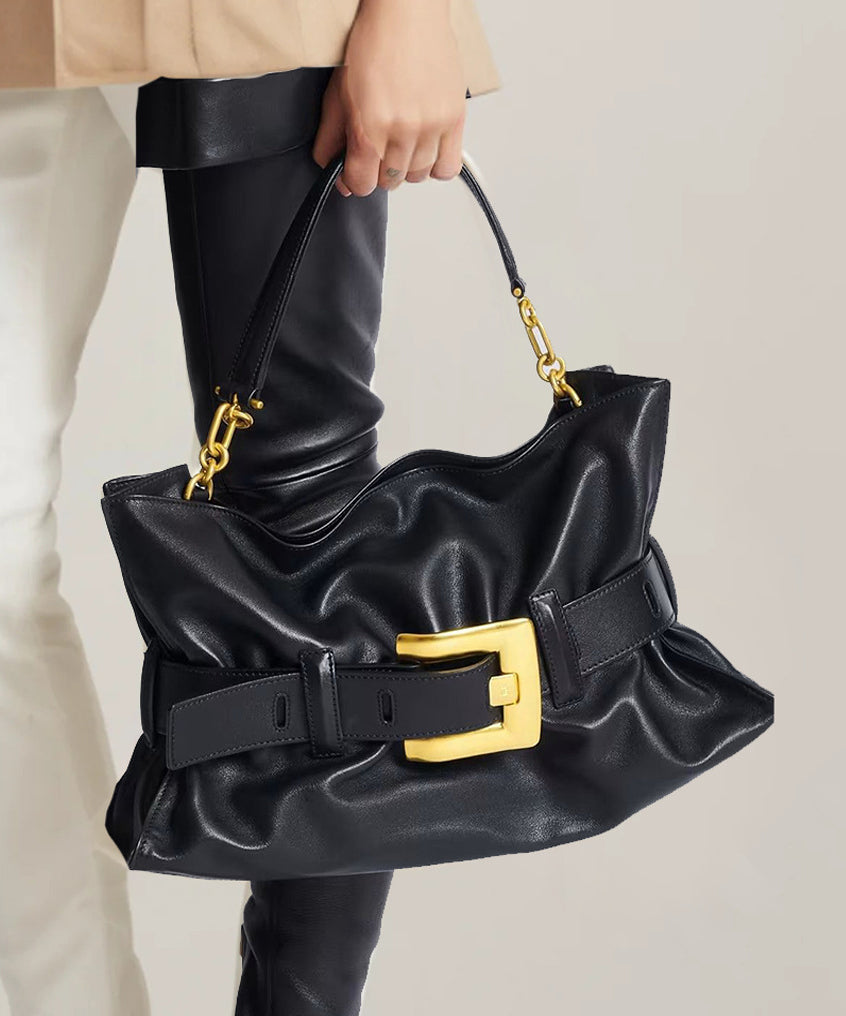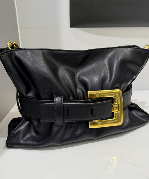 Classy Black Solid Durable Faux Leather Flap Bag
