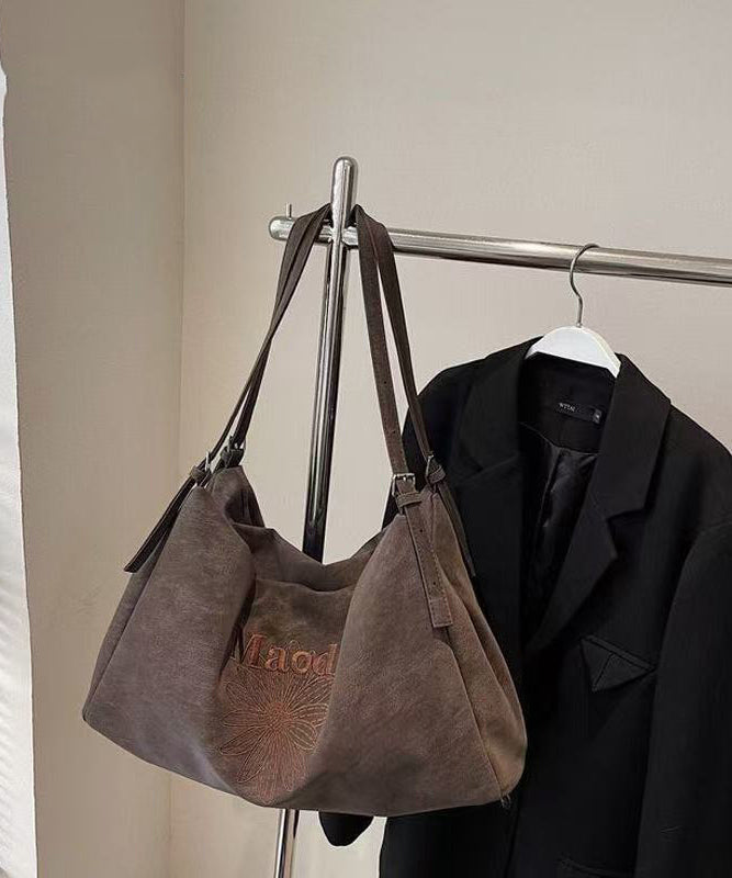 Classy Brown Embroidered Flower Letter Faux Leather Women Handbag