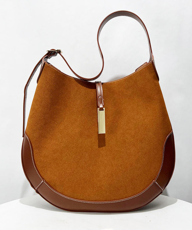 Classy Brown Patchwork Solid Durable Suede Saddle Bag