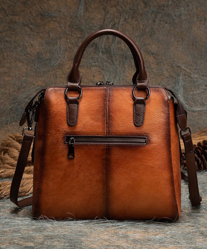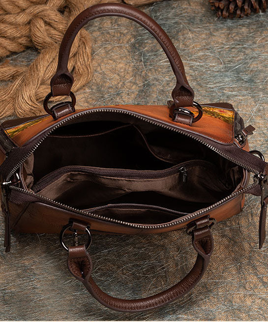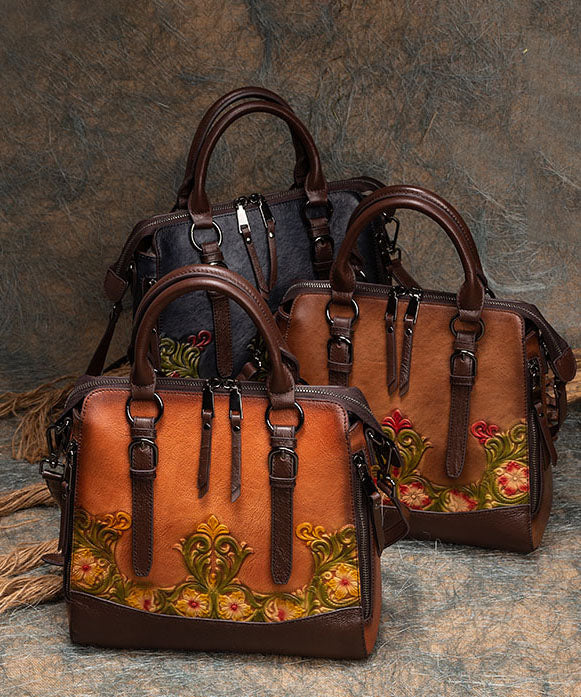 Classy Brown The Sunflowers Embossing Calf Leather Tote Handbag