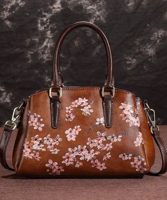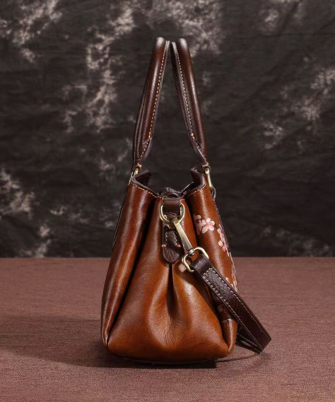 Classy Coffee Embossed Versatile Calf Leather Tote Handbag