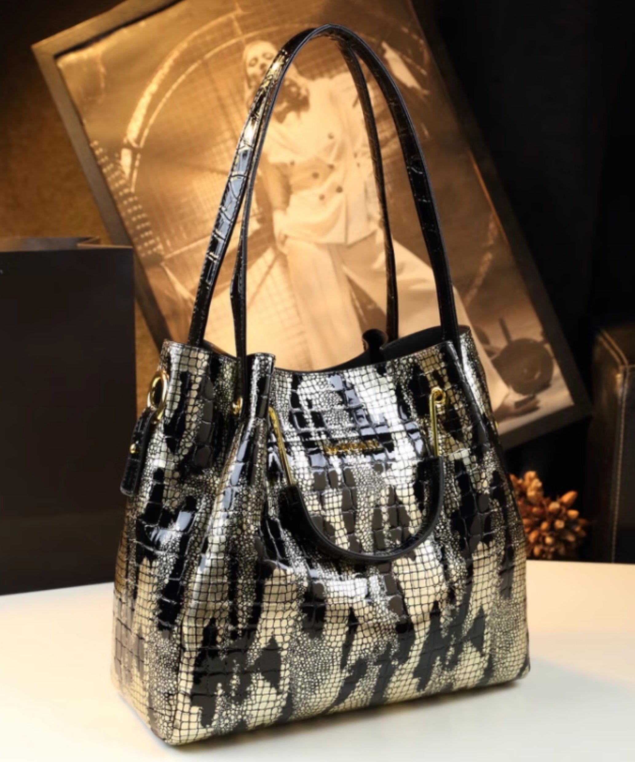 Classy Large Capacity Versatile Faux Leather Tote Handbag