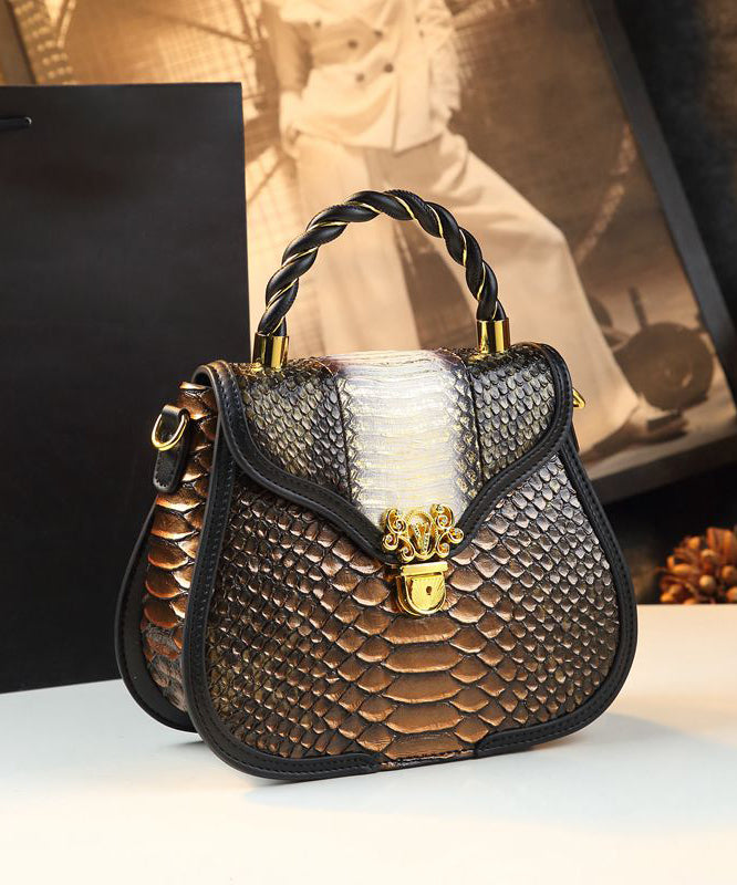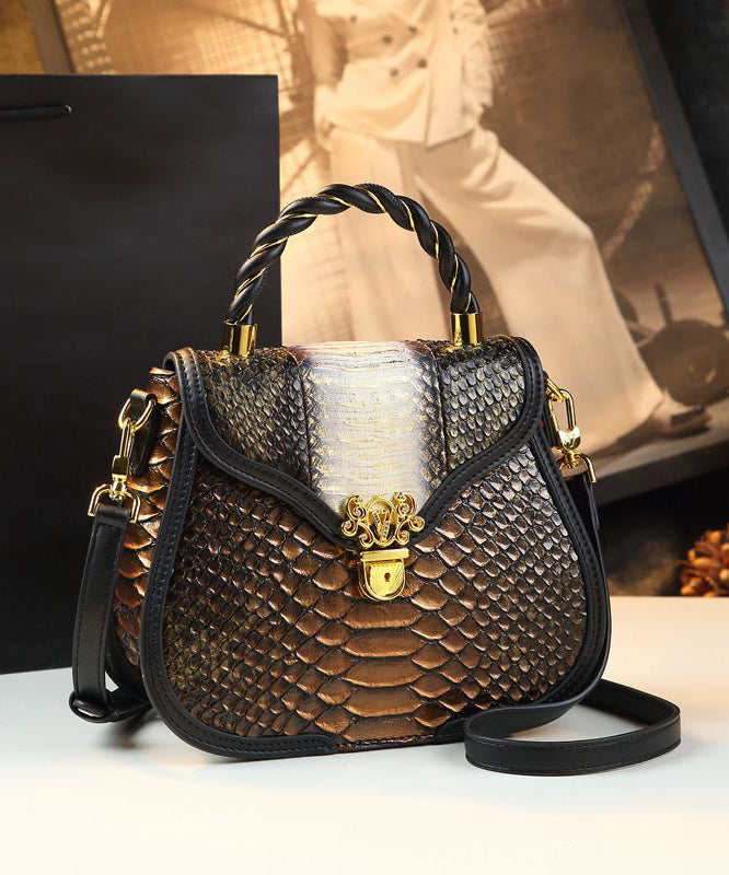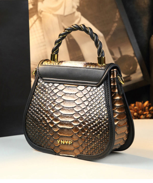 Classy Stylish Gold Embossed Calf Leather Tote Handbag