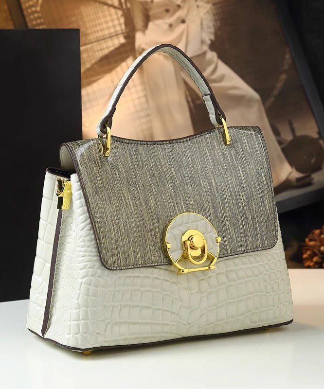 Classy White Embossed Large Capacity Calf Leather Tote Handbag