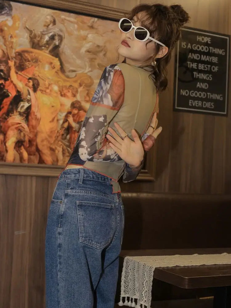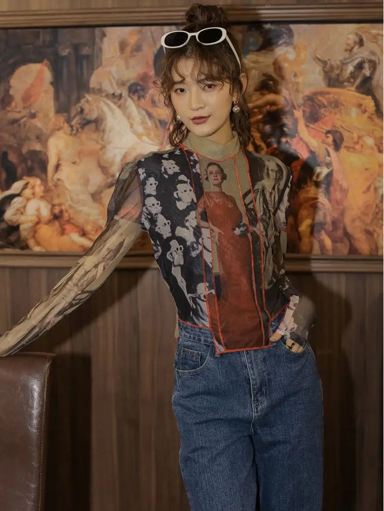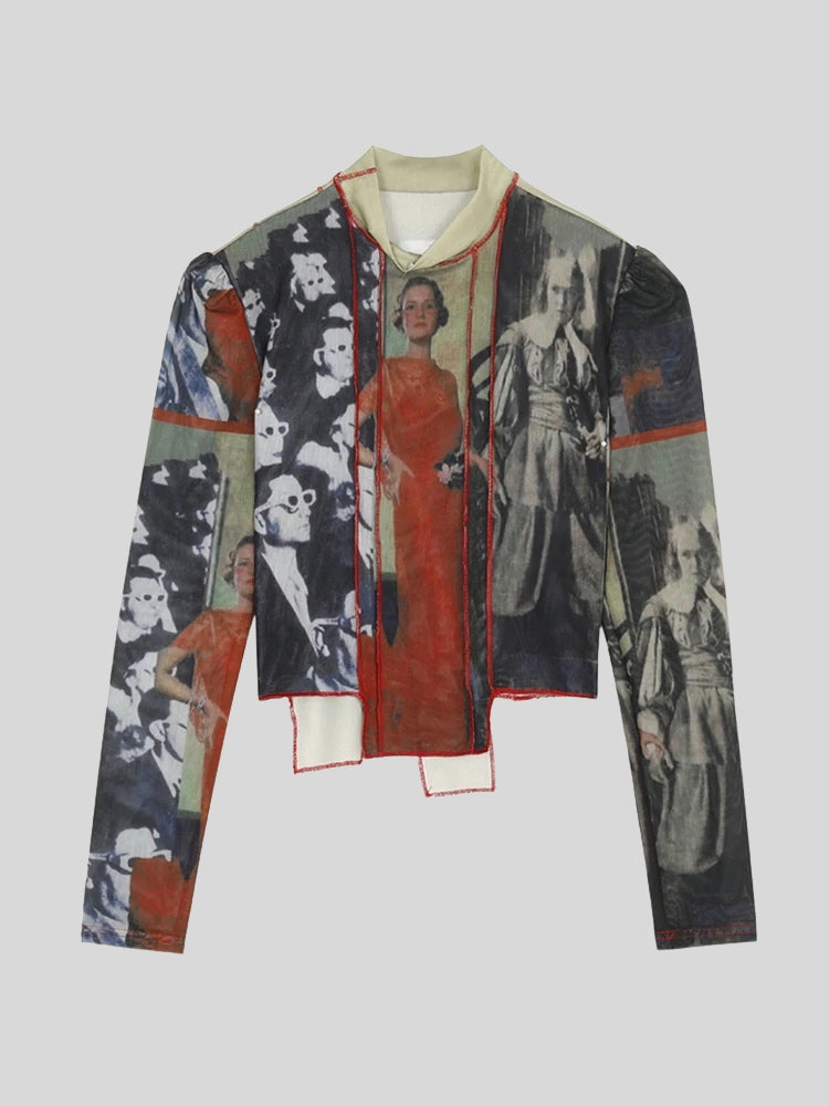 Collage Mesh Top delivers a bold layered look with a sheer base and detailed graphic print. Made from lightweight mesh fabric, this collage mesh top has a fitted shape that sits close to the body for clean styling. The long sleeve design works well for layering under jackets or wearing solo, making it a strong option for daily streetwear outfits.
