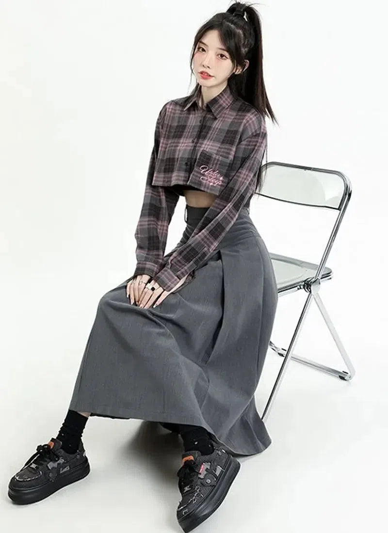 Channel the classic college girl vibe with this graceful A-line midi skirt. The understated gray hue complements its pleated design, and the high waistline accentuates your silhouette. An invisible zip fastening ensures a seamless look. Whether on-campus or off, this skirt exudes scholarly chic.