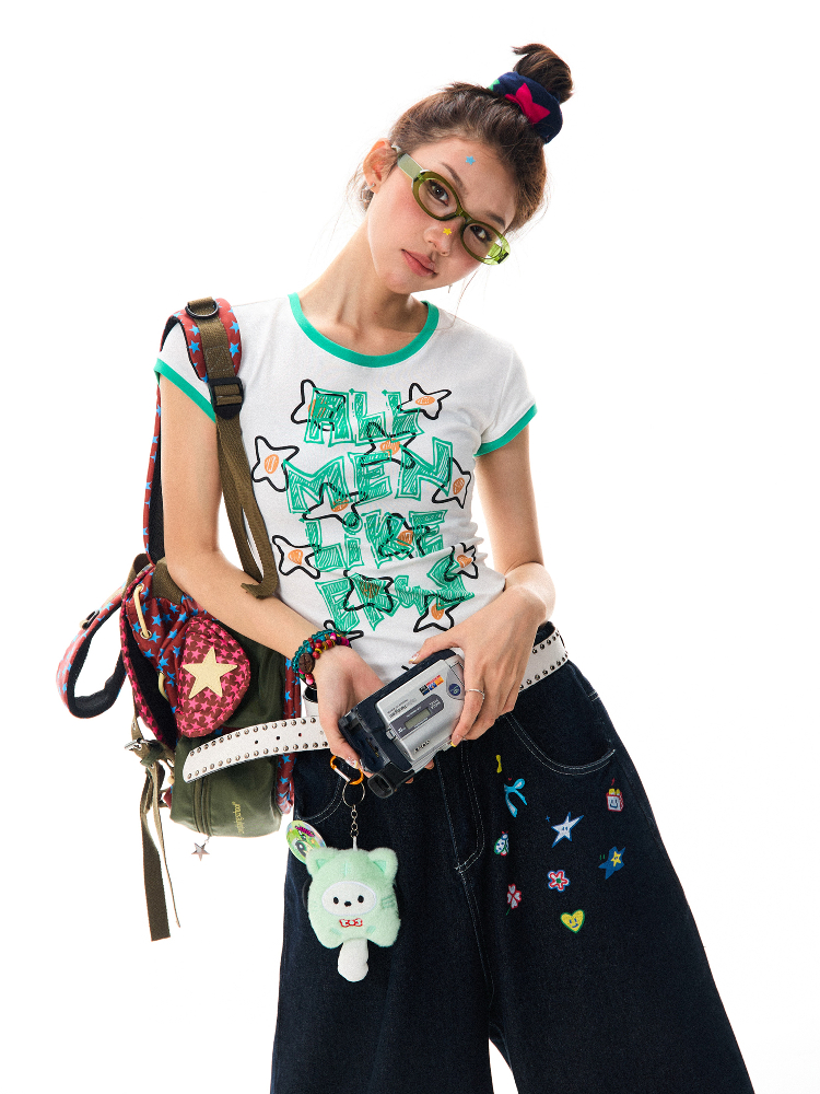 Graffiti Short Sleeve Women Summer Casual Top, Y2K High-quality product featuring prom dresses, spring outfits, business casual outfits and more. Modern design that fits the latest trends. Premium materials ensure durability and comfort. Order now for special offers! Product designed with attention to every detail. Suitable for all occasions and personal styles.