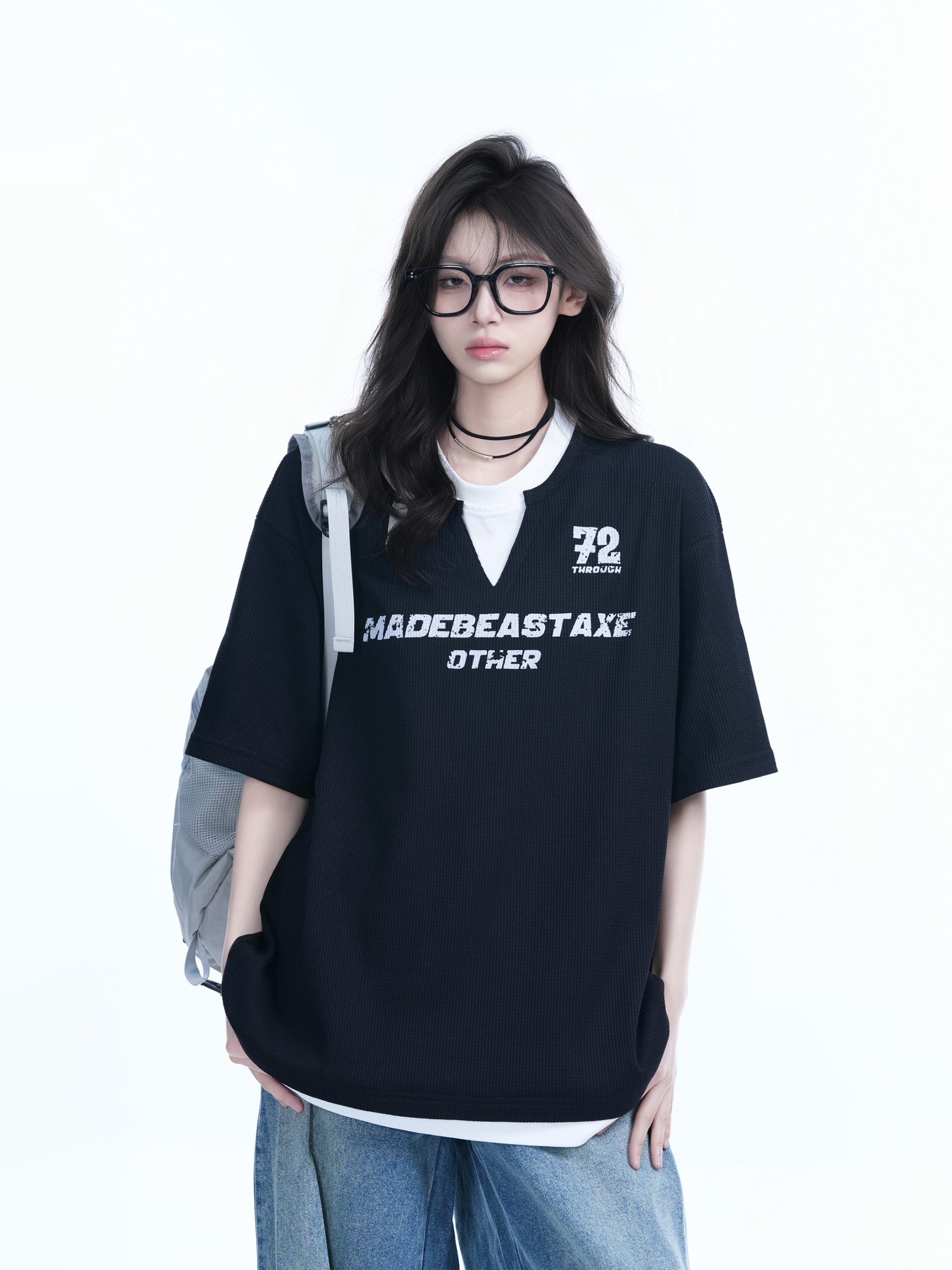 Faux Two V- Neck Short Sleeve Women Waffle Texture, Loose Fit, College, Casual High-quality product featuring prom dresses, spring outfits, business casual outfits and more. Modern design that fits the latest trends. Premium materials ensure durability and comfort. Order now for special offers! Product designed with attention to every detail. Suitable for all occasions and personal styles.