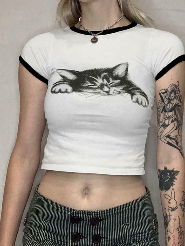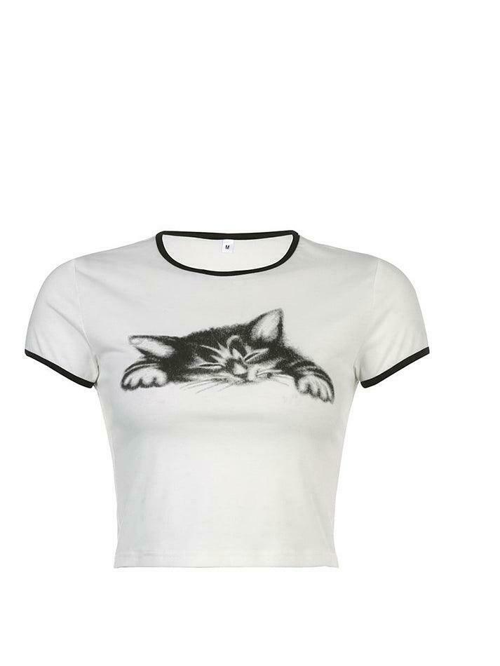 Casual outfits Coquette Cat Print Crop Top ContraTrim High-quality product featuring prom dresses, spring outfits, business casual outfits and more. Modern design that fits the latest trends. Premium materials ensure durability and comfort. Order now for special offers! Product designed with attention to every detail. Suitable for all occasions and personal styles.