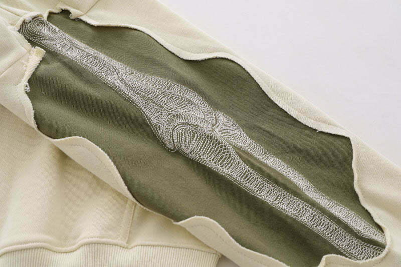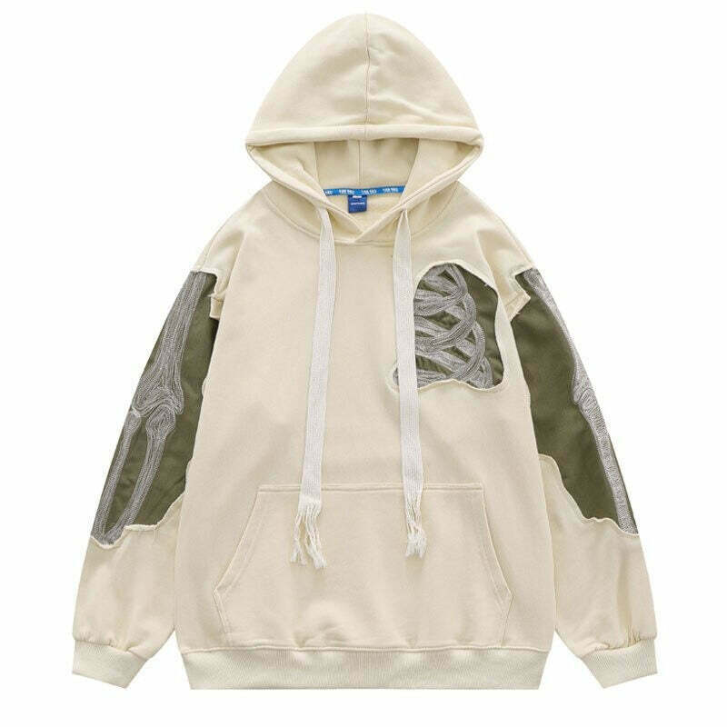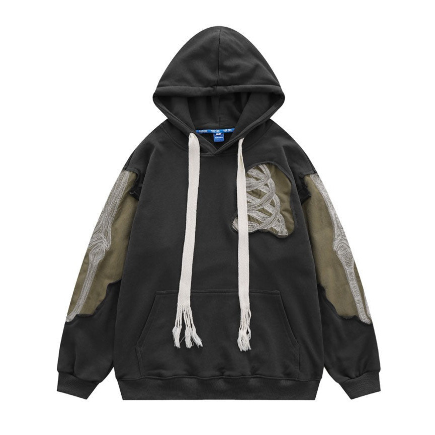 Our Distressed Skeleton Embroidered Hoodie is constructed from a lightweight blend of cotton and polyester for optimal comfort. Unique details, like the front chest and sleeve ‘bones’ 🦴 embroidery, contrast patch detailing, kangaroo pocket, and oversized drawstrings, give this hoodie an edge, while the dropped shoulder and ribbed cuff and hem provide a classic silhouette. ️