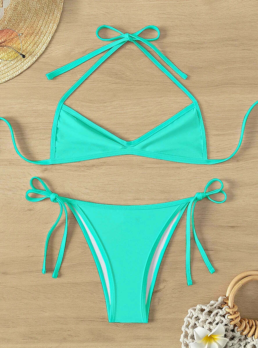 Casual Outfits Coquette Pleated Beach Bikini Y2k Halter Top – Outfit Ideas