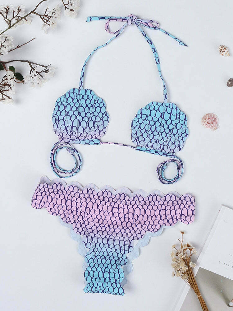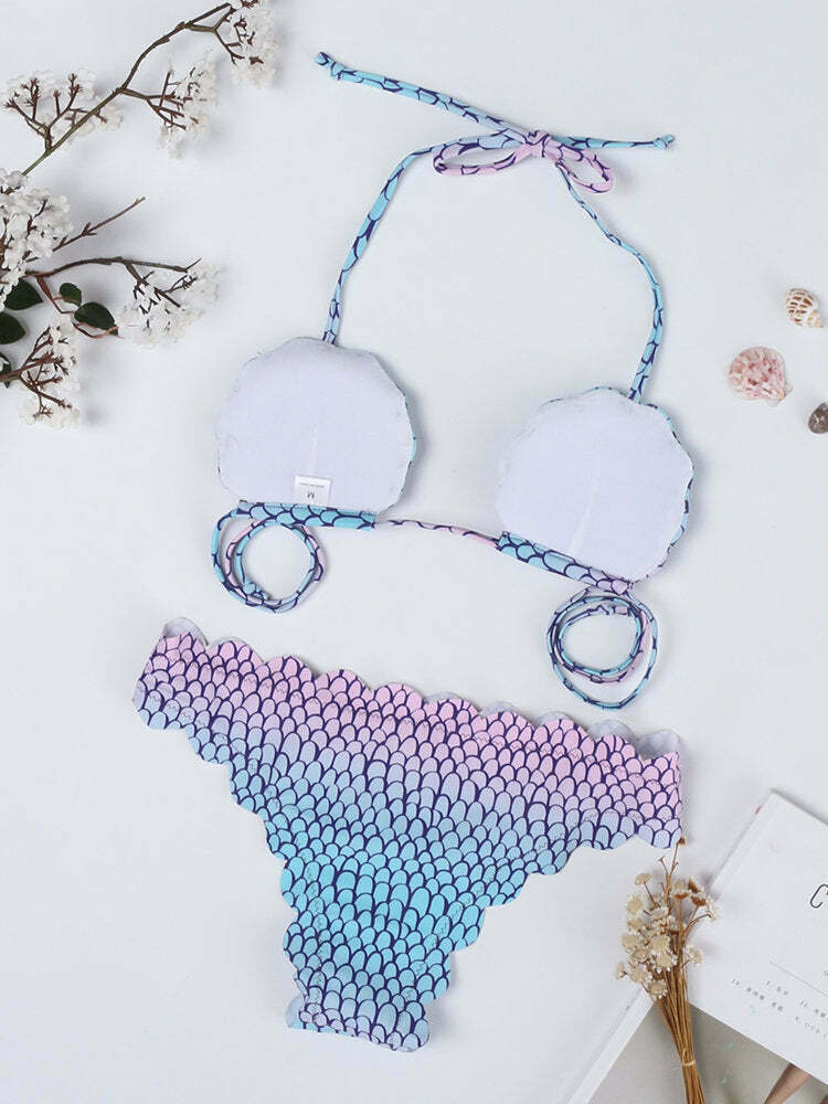 Casual outfits Coquette Shell Wave Halter Backless Bikini Swimsuit High-quality product featuring prom dresses, spring outfits, business casual outfits and more. Modern design that fits the latest trends. Premium materials ensure durability and comfort. Order now for special offers! Product designed with attention to every detail. Suitable for all occasions and personal styles.