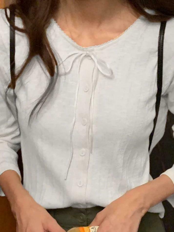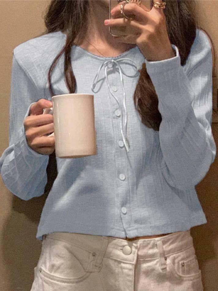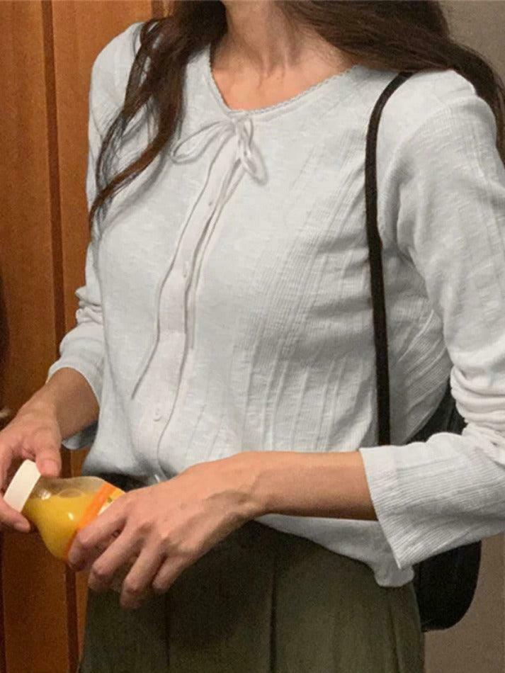 Casual Outfits Coquette Solid Tie Front Bow Long Sleeve Knit – Outfit Ideas High-quality product featuring prom dresses, spring outfits, business casual outfits and more. Modern design that fits the latest trends. Premium materials ensure durability and comfort. Order now for special offers! Product designed with attention to every detail. Suitable for all occasions and personal styles.