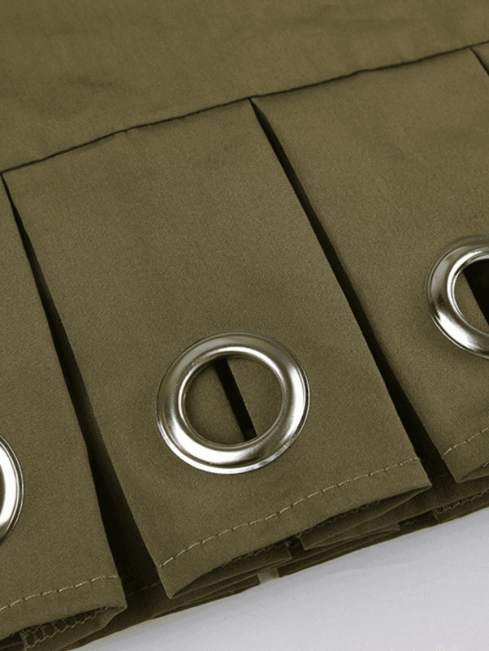Unique pleated hem: The pleated hem design is adorned with silver round holes, adding a touch of street and fashion forward style to the dress.