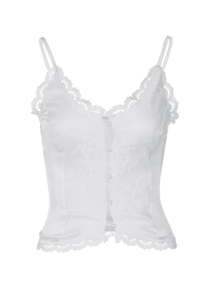Casual Outfits Coquette V- Neck Lace Embroidery Cami Top – O – Outfit Ideas