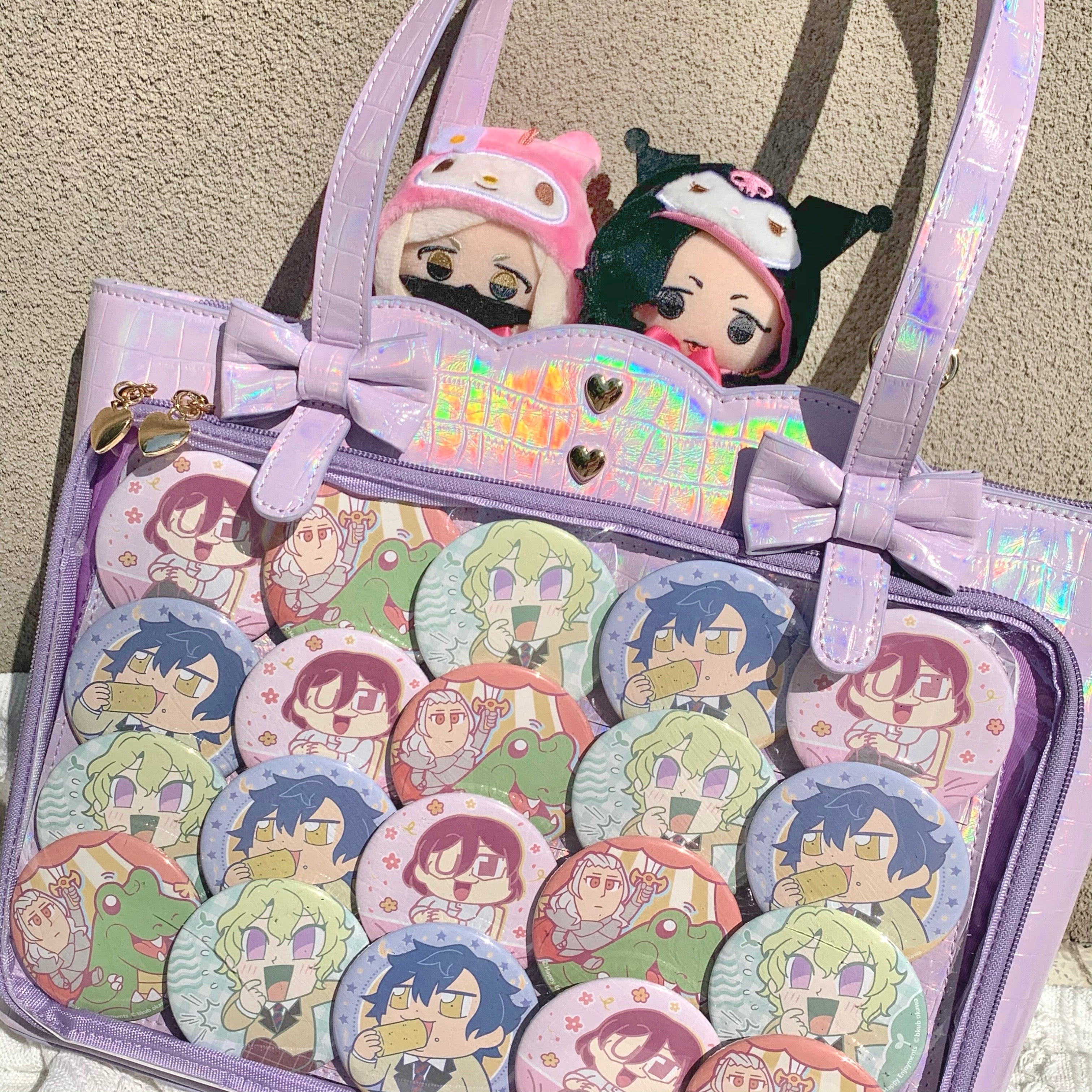 Enhance your fashion style with our Cute Bow Ita Shoulder Bag! Made of high-quality PU leather, this handbag features a clear display pocket at the front for easy viewing of your pins and badges. The insert inside is perfect for displaying and organizing your collection. Its minimalist design and sturdy handle make it a perfect accessory for all your summer adventures, from shopping to parties to travel. Show off your pin badges in a fun and practical way with this stylish tote bag!