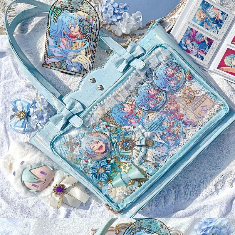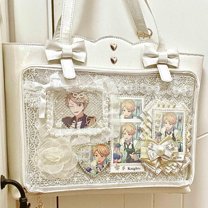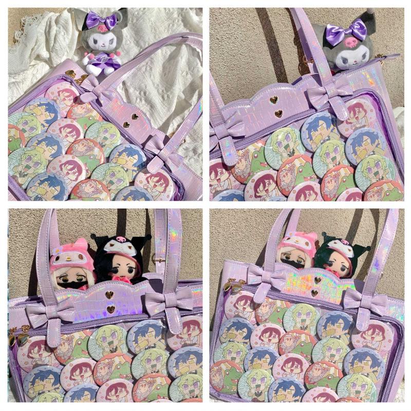 Enhance your fashion style with our Cute Bow Ita Shoulder Bag! Made of high-quality PU leather, this handbag features a clear display pocket at the front for easy viewing of your pins and badges. The insert inside is perfect for displaying and organizing your collection. Its minimalist design and sturdy handle make it a perfect accessory for all your summer adventures, from shopping to parties to travel. Show off your pin badges in a fun and practical way with this stylish tote bag!