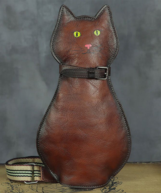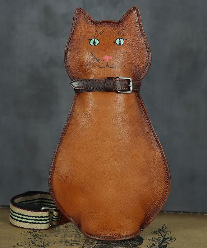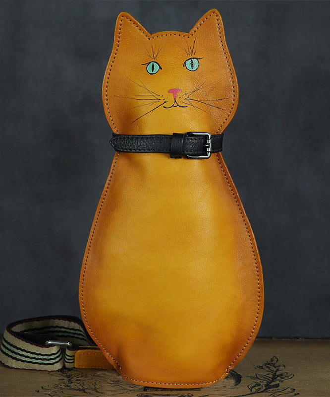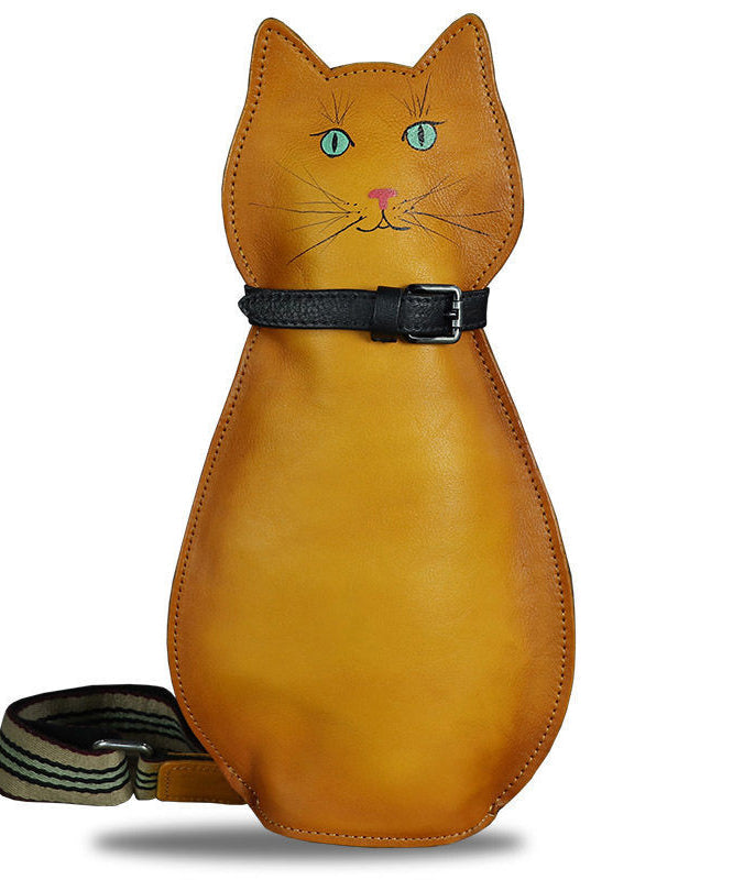 Cute Persian Cat Print Original Design Calf Leather Messenger Bag