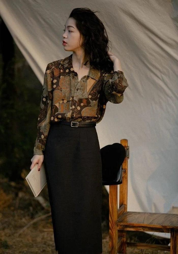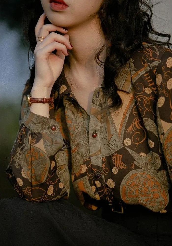 Immerse yourself in the enigmatic allure of the dark academia aesthetic with this artistic figures shirt. Elegantly tailored with a classic collar and long sleeves, its button-front fastening provides a refined touch. Perfect for a day at the library, bookstore, or a cozy date, it’s the embodiment of intellectual sophistication.