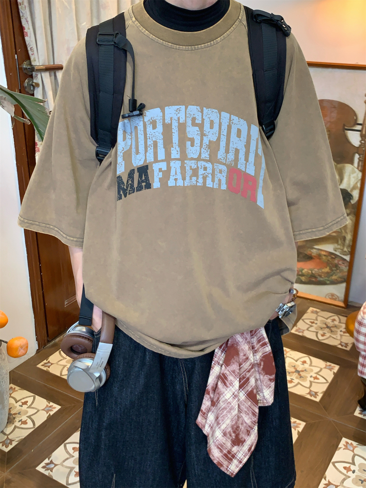 Letter Print Heavyweight Short Sleeve Women Casual Loose Neck Tee, Summer Vintage High-quality product featuring prom dresses, spring outfits, business casual outfits and more. Modern design that fits the latest trends. Premium materials ensure durability and comfort. Order now for special offers! Product designed with attention to every detail. Suitable for all occasions and personal styles.