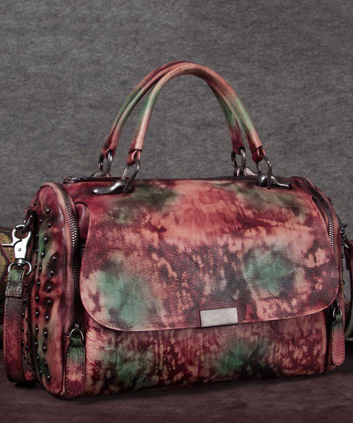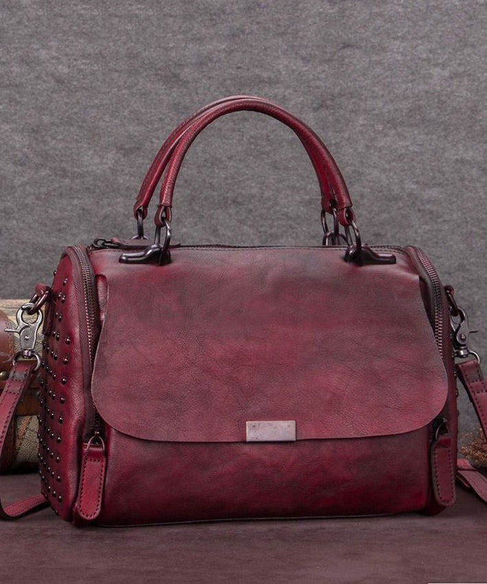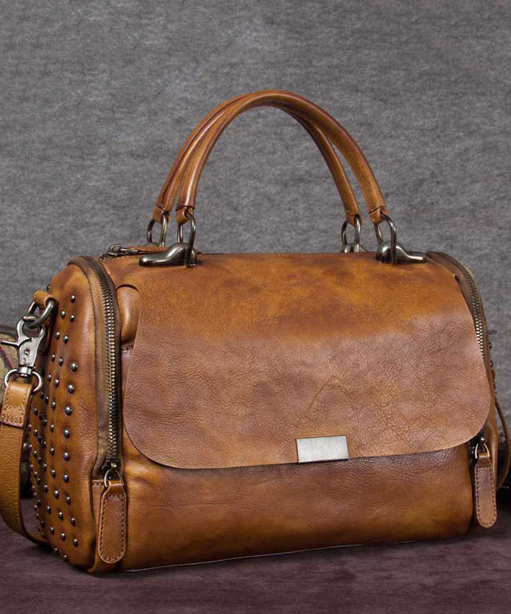 DIY Brown High-capacity Rivet Calf Leather Tote Handbag