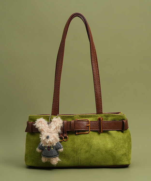 DIY Grass Green Plush Toy Durable Faux Leather Satchel Handbag