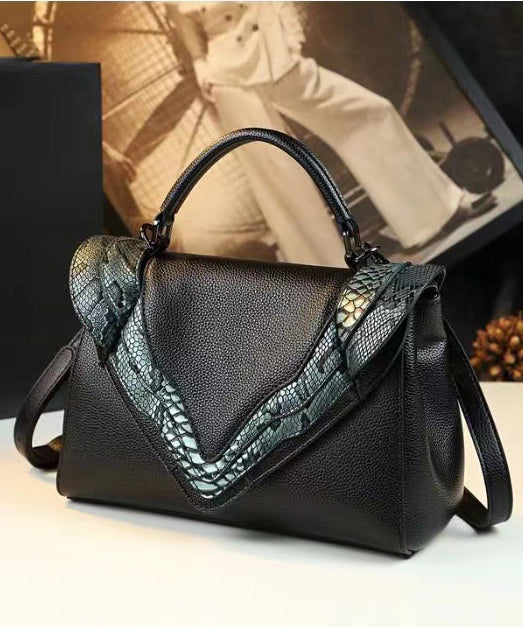 DIY Green Serpentine Large Capacity Faux Leather Tote Handbag