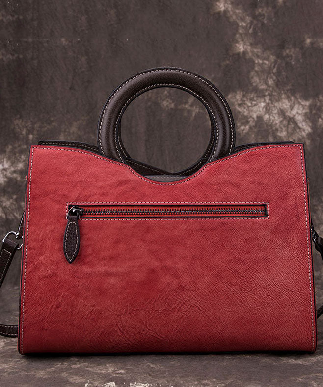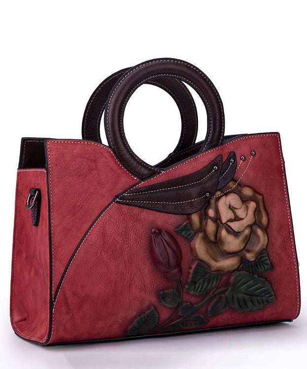 DIY Red Asymmetrical Design Jacquard Calf Leather Tote Handbag