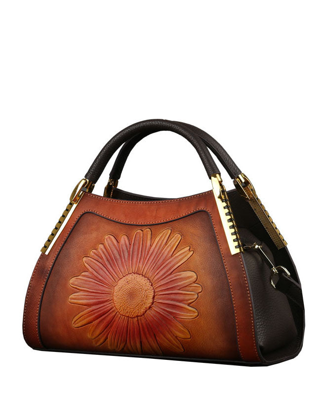 DIY Red The Sunflowers Jacquard Calf Leather Tote Handbag