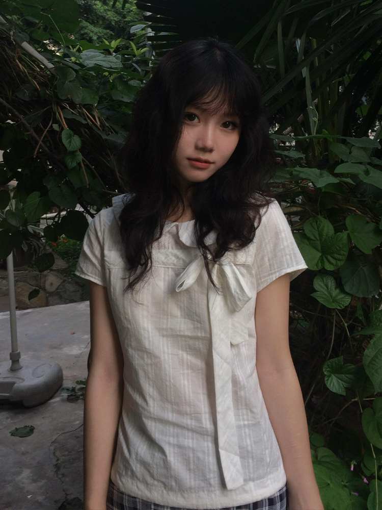 Doll Collar Short Sleeve Shirt Women, Miu Bow Tie Slim Fit Top, Summer High-quality product featuring prom dresses, spring outfits, business casual outfits and more. Modern design that fits the latest trends. Premium materials ensure durability and comfort. Order now for special offers! Product designed with attention to every detail. Suitable for all occasions and personal styles.