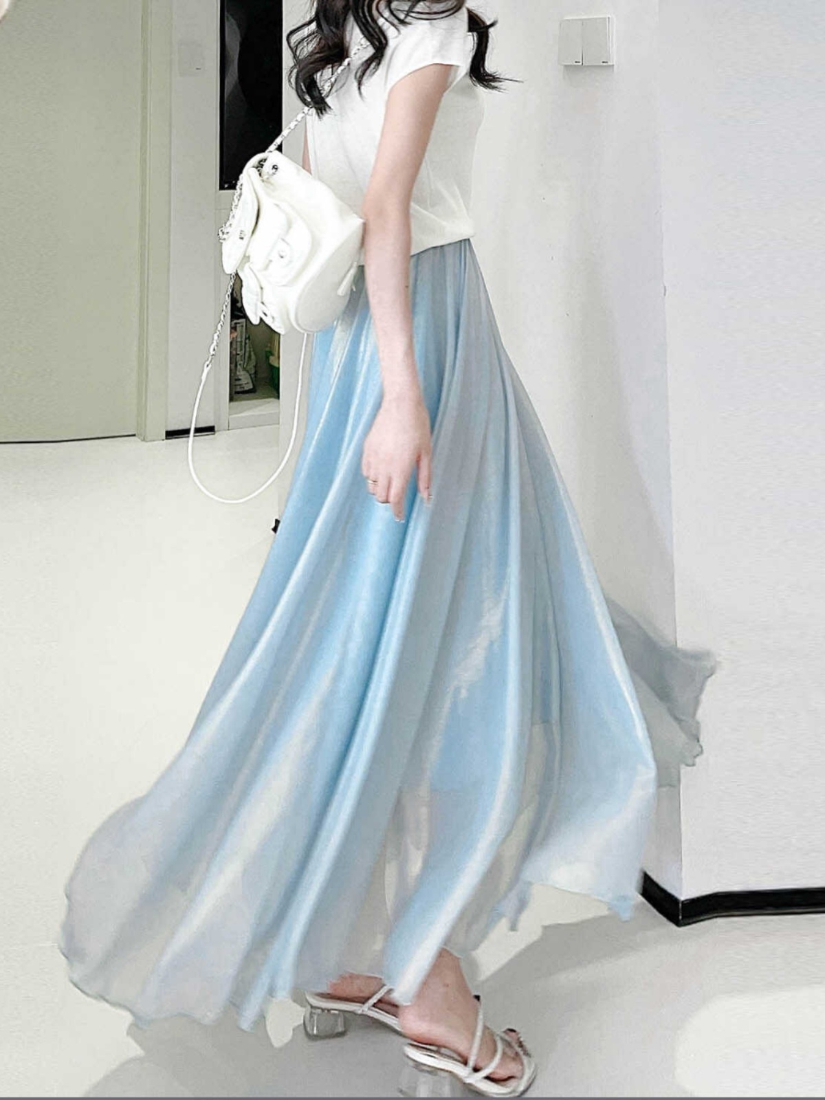 Elevate your spring and summer wardrobe with our Dreamy High-Waisted Soft Smoke Chiffon Maxi Skirt. Crafted from lightweight chiffon, this skirt features an ethereal, flowing eight-meter swing style that gracefully drapes around you, creating an enchanting silhouette perfect for any occasion. With its soft smoke hue and delicate luster, you’ll feel effortlessly chic and comfortable all day long. Don’t miss out on this must-have piece—add it to your cart today and step into a world of style!
