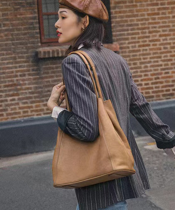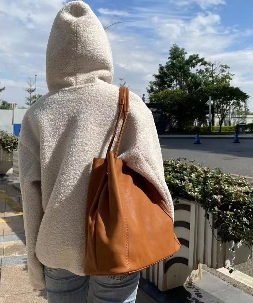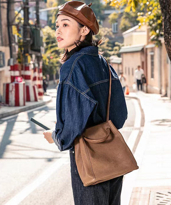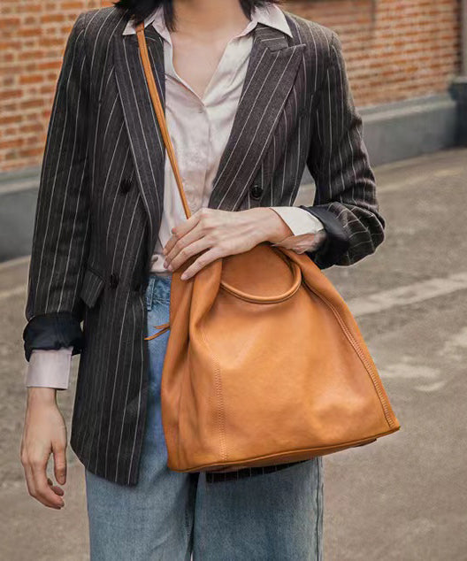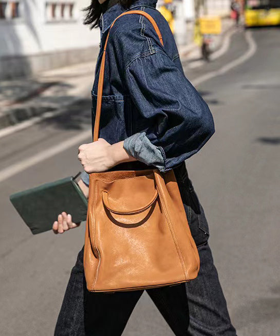 Elegant Caramel Large Capacity Calf Leather Messenger Bag