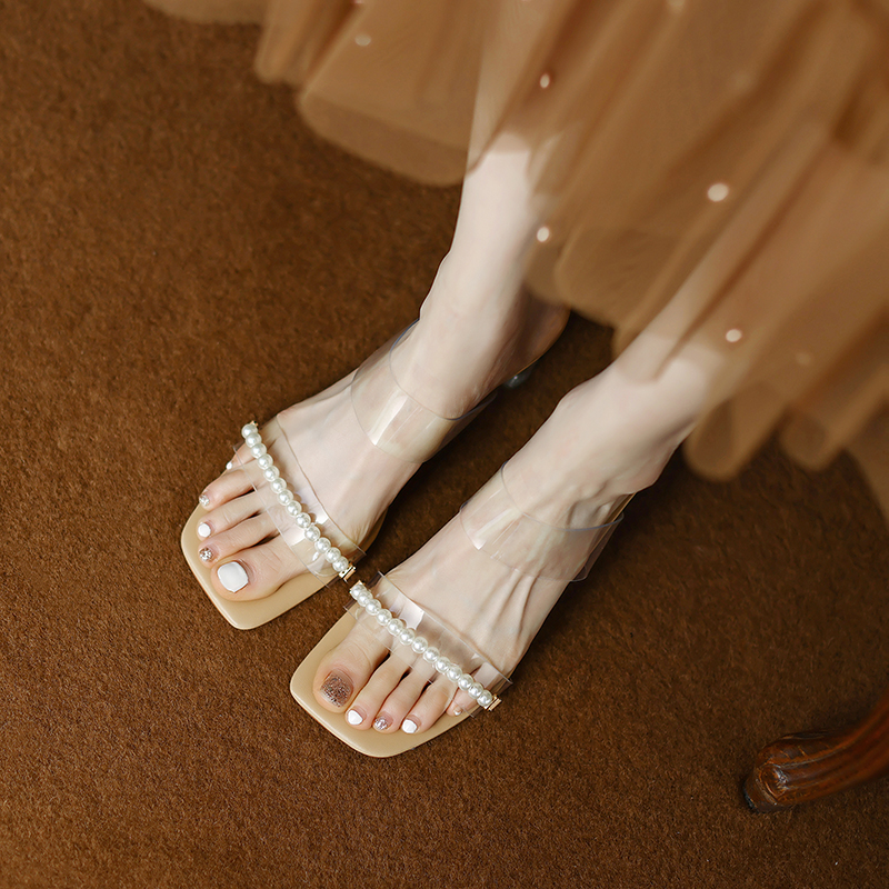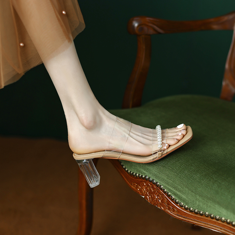 Fairy Pearl Transparent Crystal High Heeled Slide Sals Women – Outfit Ideas