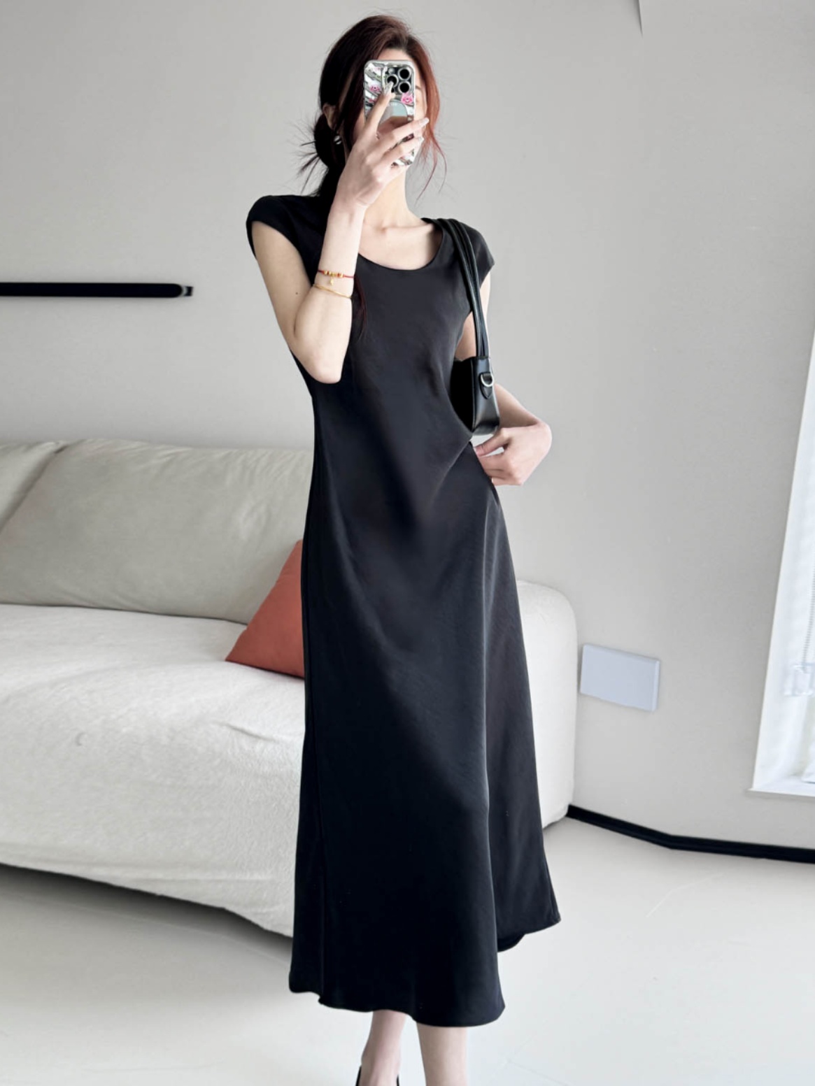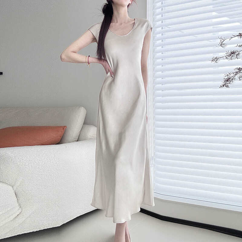 Step into elegance with our Elegant Heavy Satin Diagonal Cut U-Neck Short Sleeve Dress, designed for the modern woman. This stunning summer 2025 piece boasts a flattering slim fit that hugs your curves beautifully, making it perfect for both chic evening outings and sophisticated commutes. The luxurious satin fabric drapes gracefully, while the unique diagonal cut and U-neckline add a touch of contemporary flair. Elevate your wardrobe and enjoy unmatched comfort and style. Add to your cart today and redefine your fashion statement!