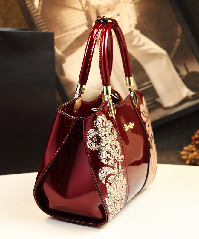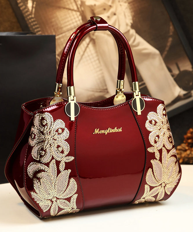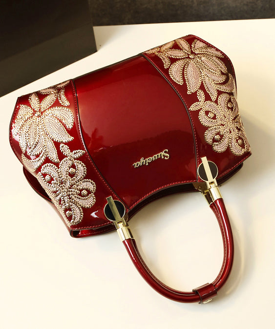 Elegant Mulberry Sequins Floral Calf Leather Tote Handbag