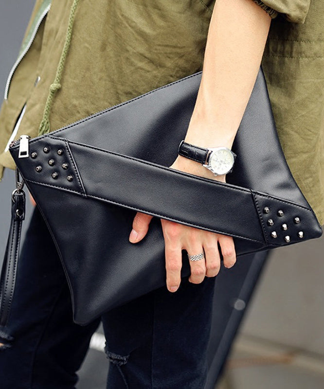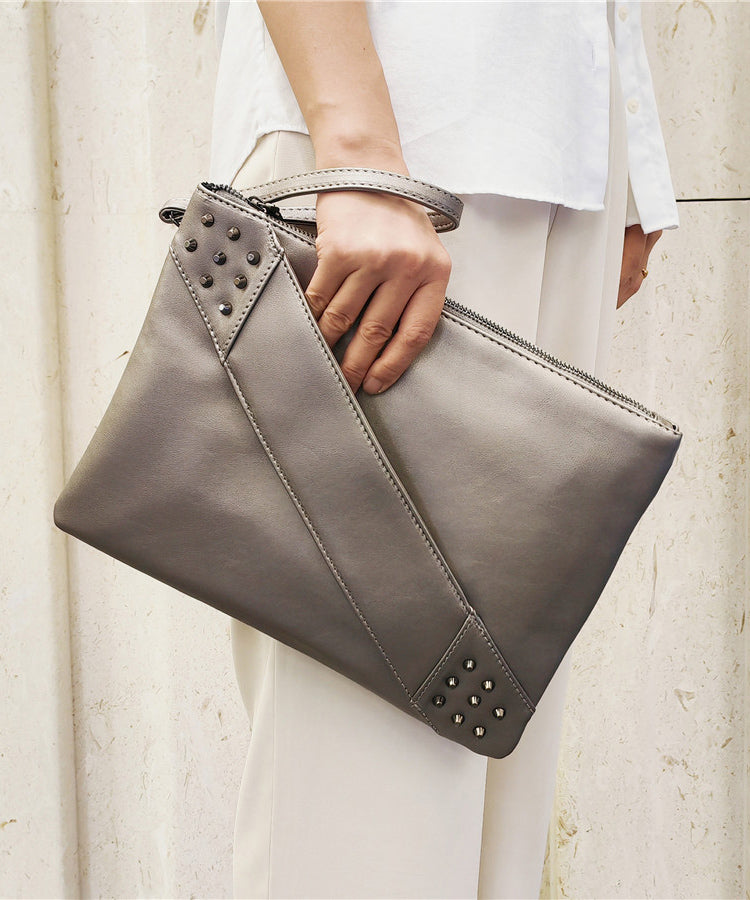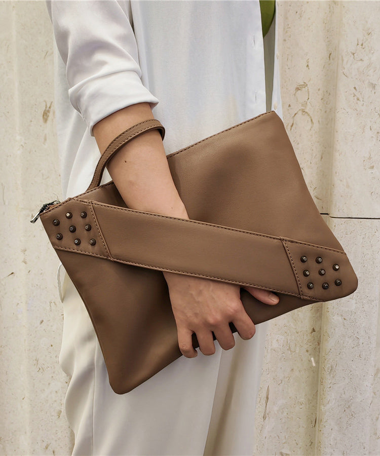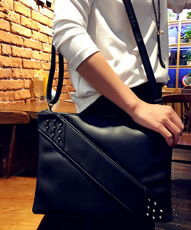 Elegant Red Nail Bead Zippered Faux Leather Satchel Handbag