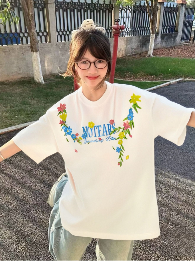 Elevate your summer wardrobe with our Embroidered Floral Heavyweight Short-Sleeve T-Shirt for Women, a must-have for the trendy couple’s style in 2025. This Y2K-inspired top features exquisite floral embroidery that adds a touch of whimsy to your everyday look, while its heavyweight fabric ensures a flattering fit and lasting comfort. Perfect for pairing with shorts or jeans, this t-shirt is versatile enough for any occasion. Don’t miss out on this stylish essential—add it to your cart today!