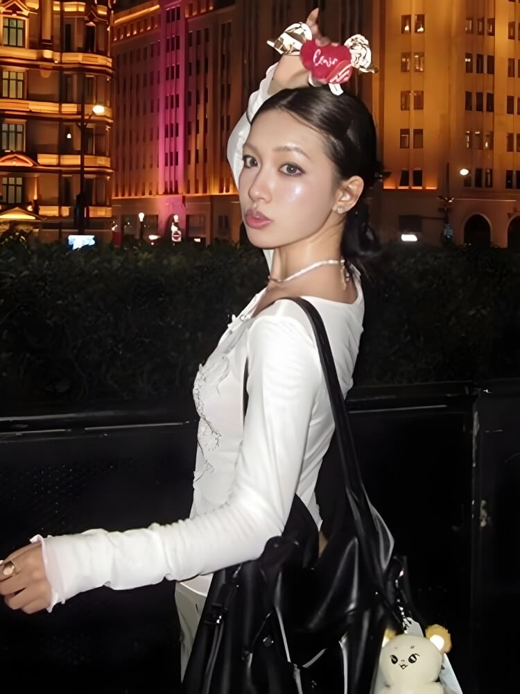 A delicate embroidered long sleeve top that blends casual wear with romantic flair. The slim fit and soft fabric highlight the figure, while floral stitching adds charm. With a scoop neckline and versatile design, it’s easy to style for everyday looks or night outings, making it a wardrobe essential.