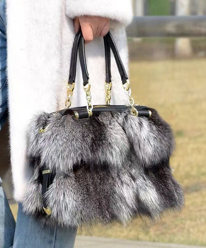 European And American Style Fox Fur Large Capacity Tote Handbag