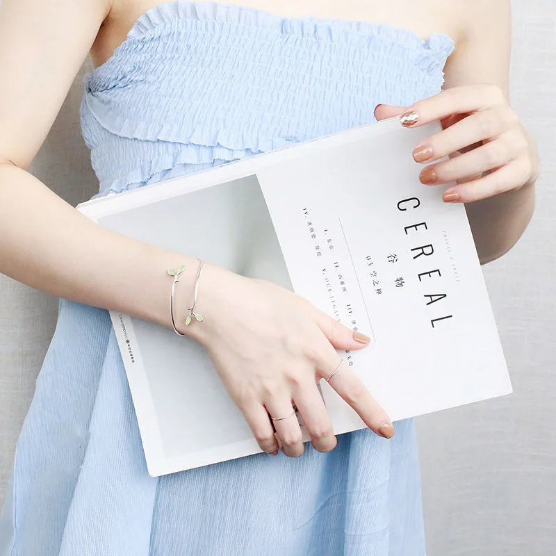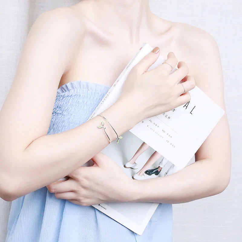 Delicate and dreamy, the Fairycore Leaf Wing Bracelet is like a whisper from nature itself. Its silver vine wraps gently around the wrist, ending in soft green enamel leaves that add an ethereal glow to your everyday style.
