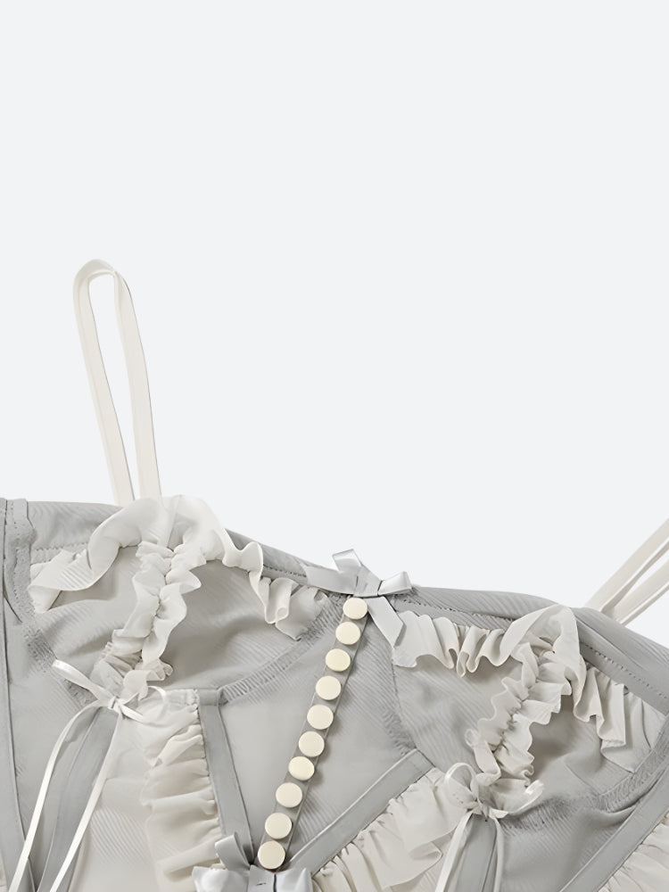 Fairycore Mesh Ruffled Top & Mini Skirt Two Piece Set