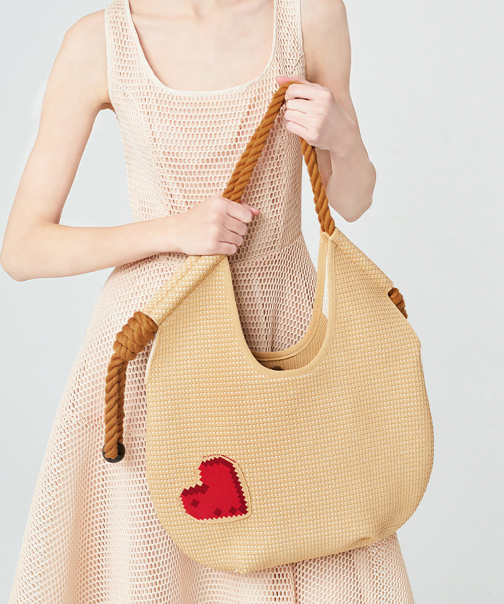 Fashion Beige Solid Durable Patchwork Love Woven Shoulder Bags