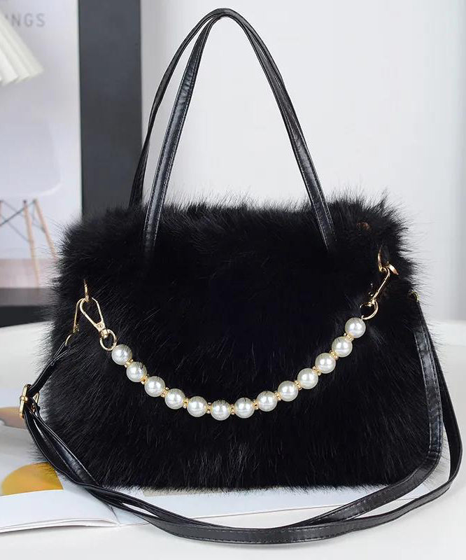 Fashion Black Faux Fur Bead Versatile Tote Handbag