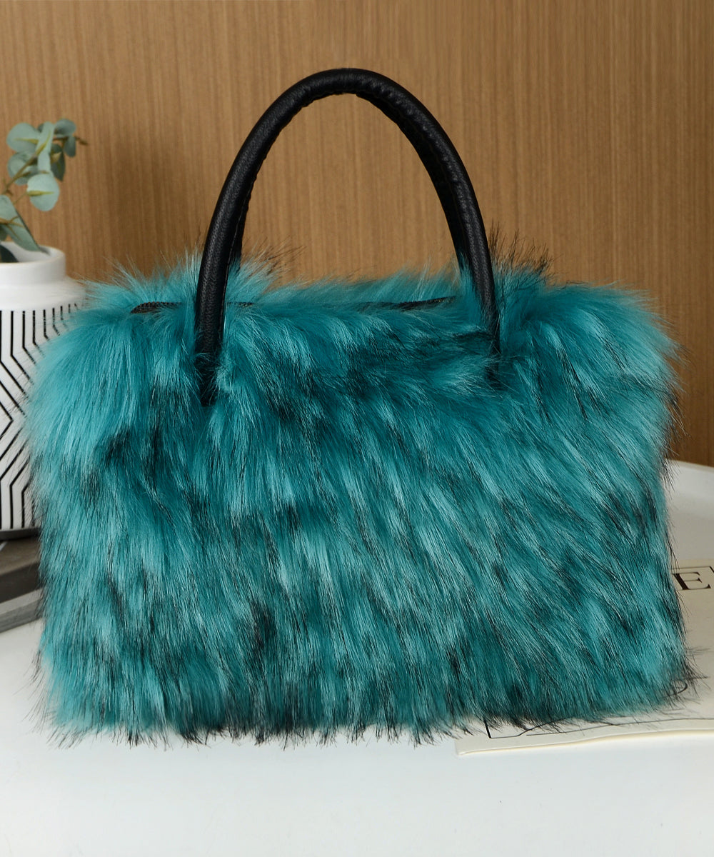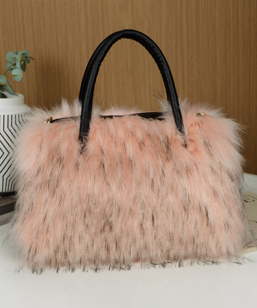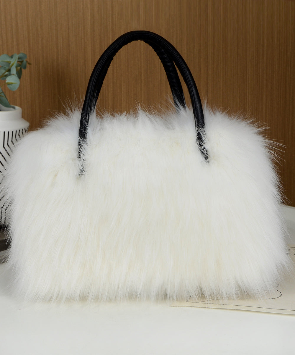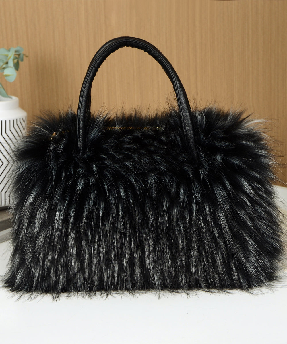 Fashion Black Large Capacity Raccoon Hair Tote Handbag