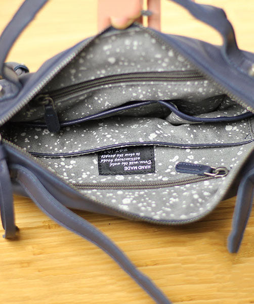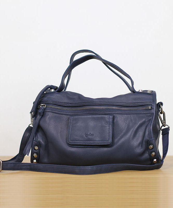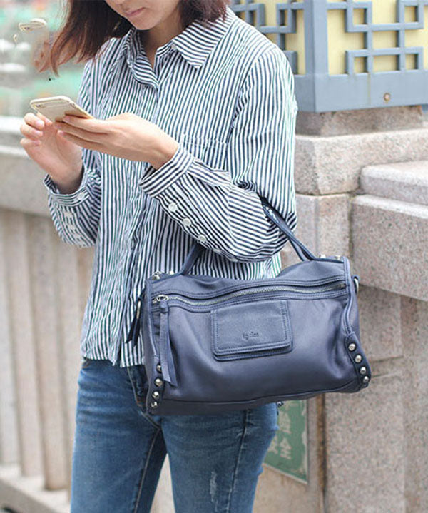 Fashion Blue Rivet Calf Leather Locomotive Tote Handbag