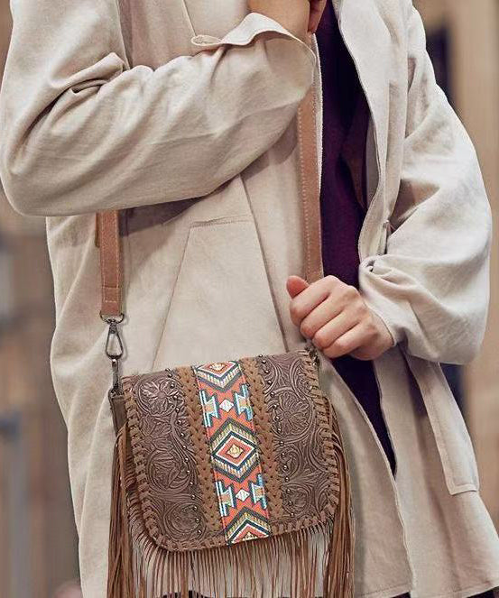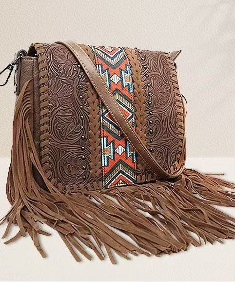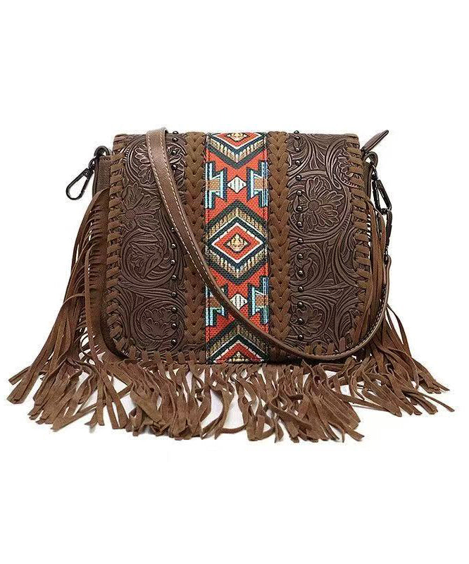 Fashion Brown Embossing Tasseled Faux Leather Messenger Bag