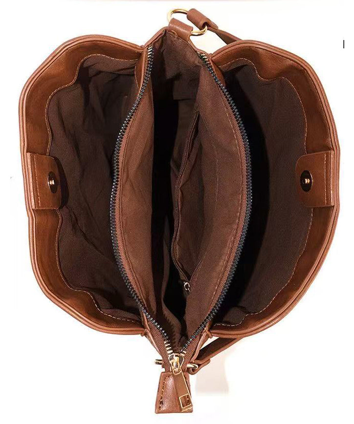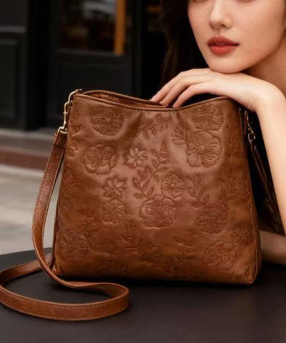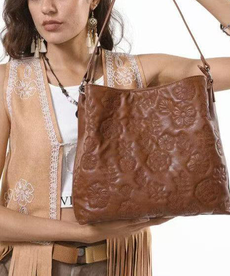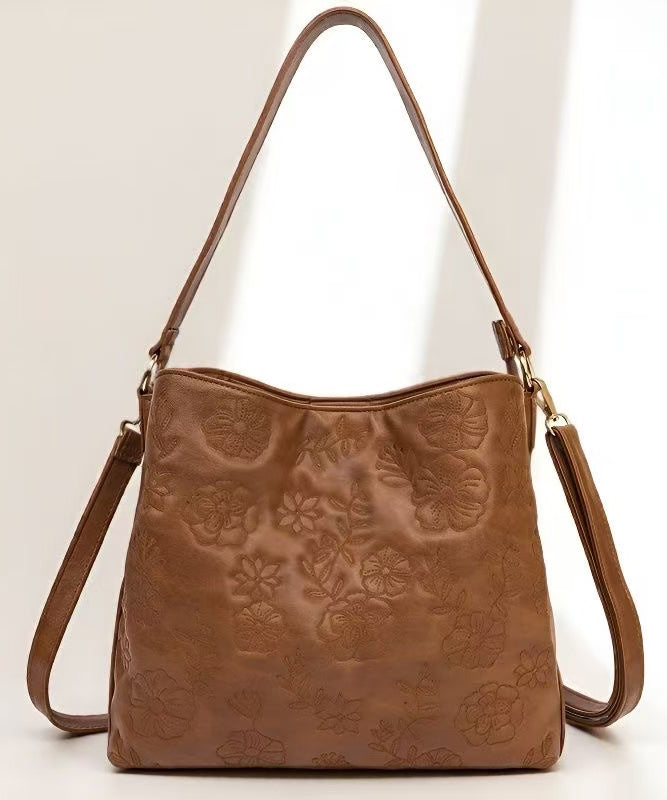 Fashion Brown Embroidered Inner Pocket Faux Leather Women Handbag