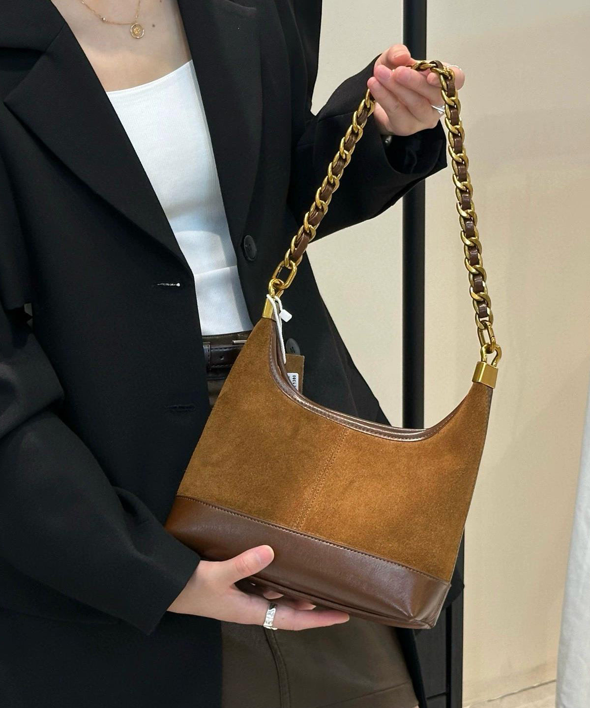 Be the first to review “Fashion Brown Patchwork Suede Chain Linked Bucket Bag” Cancel reply